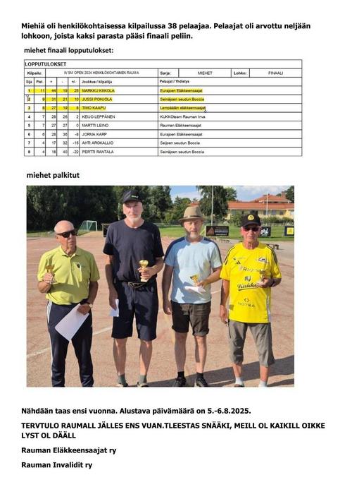 Rauman Eläkkeensaajat nousi 2025 kilpailussa takaisin mestaruussarjaan.